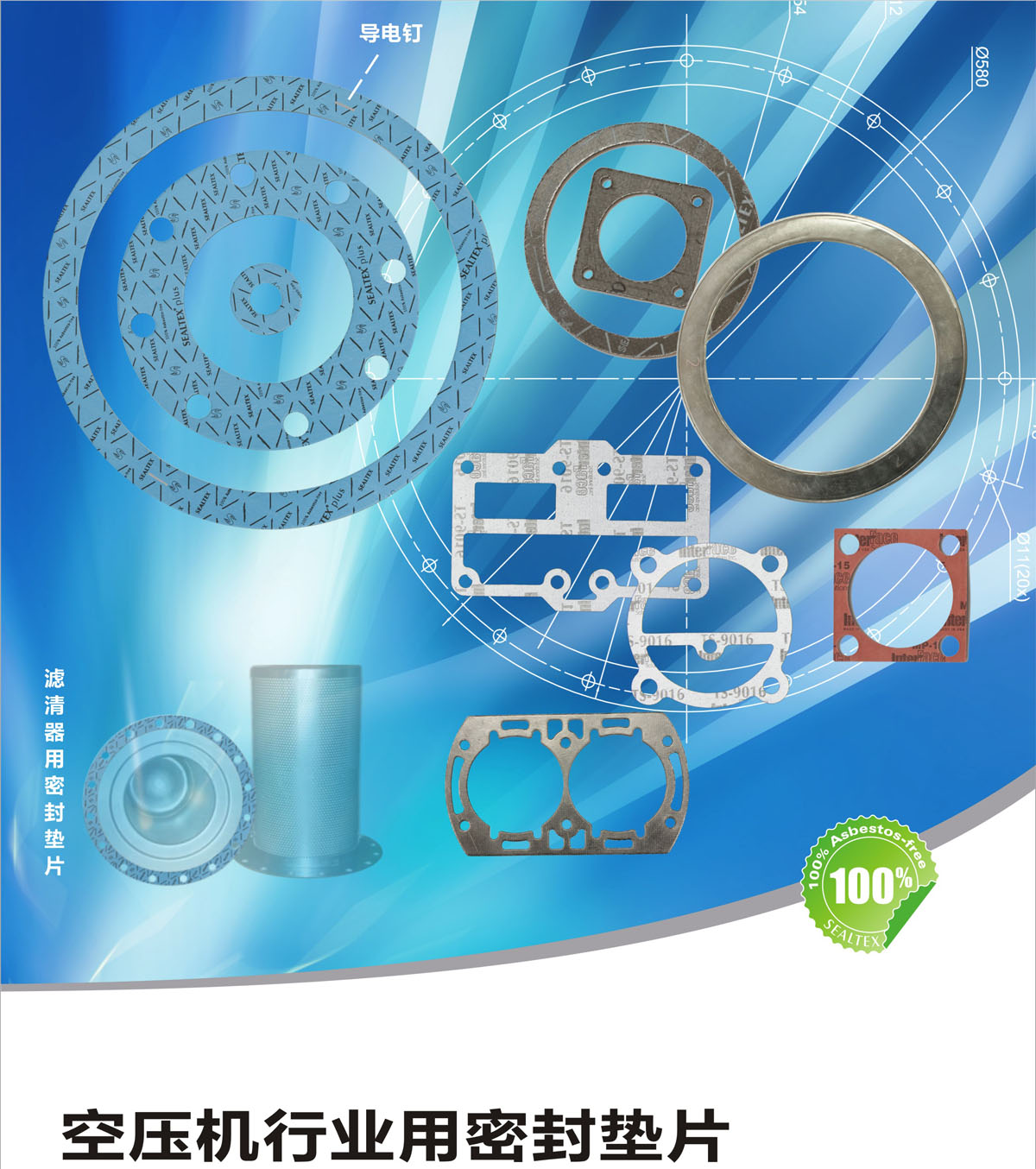 可應用于活塞機、螺桿機等各類(lèi)壓縮機中的空氣濾清器、機頭、閥板、曲軸箱、軸承蓋、進(jìn)排氣口、油漆桶、油路等部分的密封。