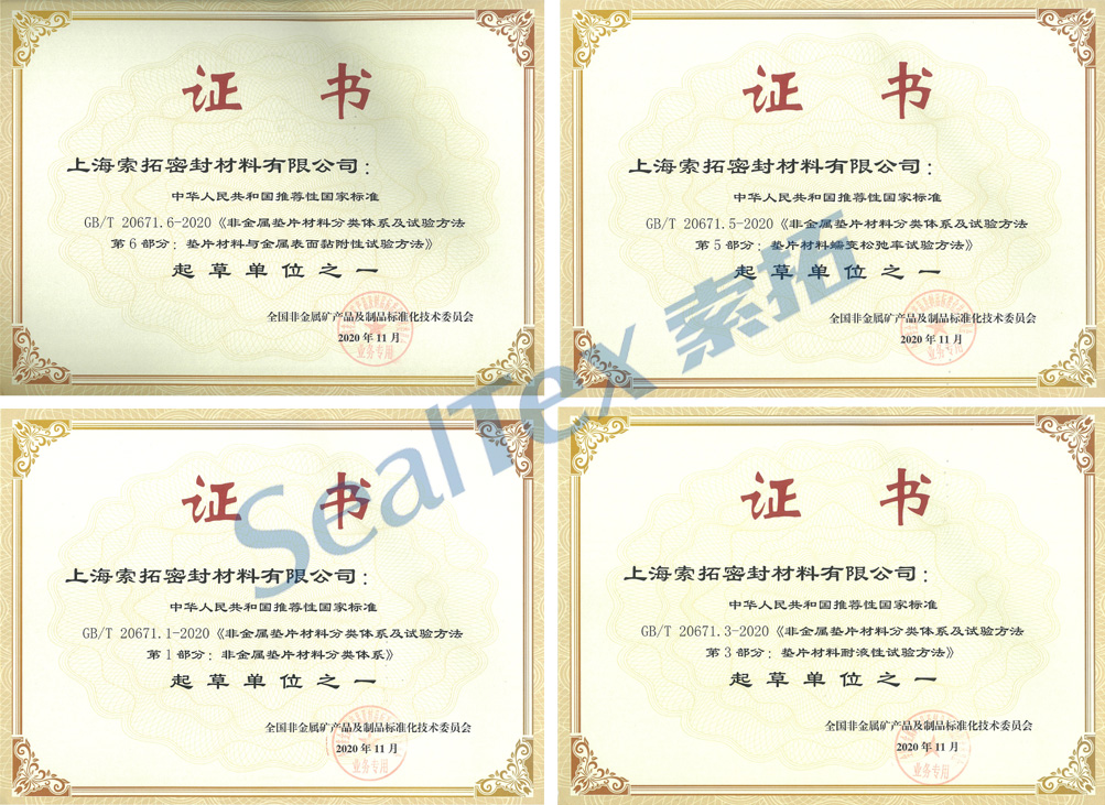 我司參與起草了GB/T 20671-2020《非金屬墊片材料分類(lèi)體系及試驗方法》中的多個(gè)部分。