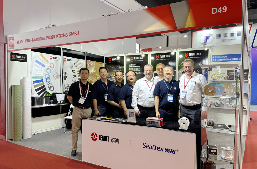 本次展會(huì )展出了帶有TEADIT® TAGTM 標記的低逸散性可追溯盤(pán)根2848,以及API 622 測試平均泄漏率僅為2ppm、ISO 15848-1 密封級別A的2236盤(pán)根;多款膨體四氟和改性四氟材料,例如:24SH膨體四氟,TF1570\TF1580\TF1590改性四氟,以及各種符合BAM氧氣測試、PFAS Free,適用于超低溫工況、低泄漏等要求的密封產(chǎn)品。