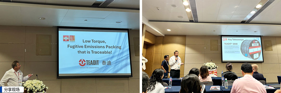 本次展會(huì )SealTex索拓與TEADIT泰迪聯(lián)合參展,展會(huì )期間,TEADIT泰迪 Oliver Zach 奧利維先生在研討會(huì )上進(jìn)行了《低扭矩、可追溯的防逸散泄漏填料(Low Torque,Fugitive Emissions Packing that is Traceable!)》主題分享。