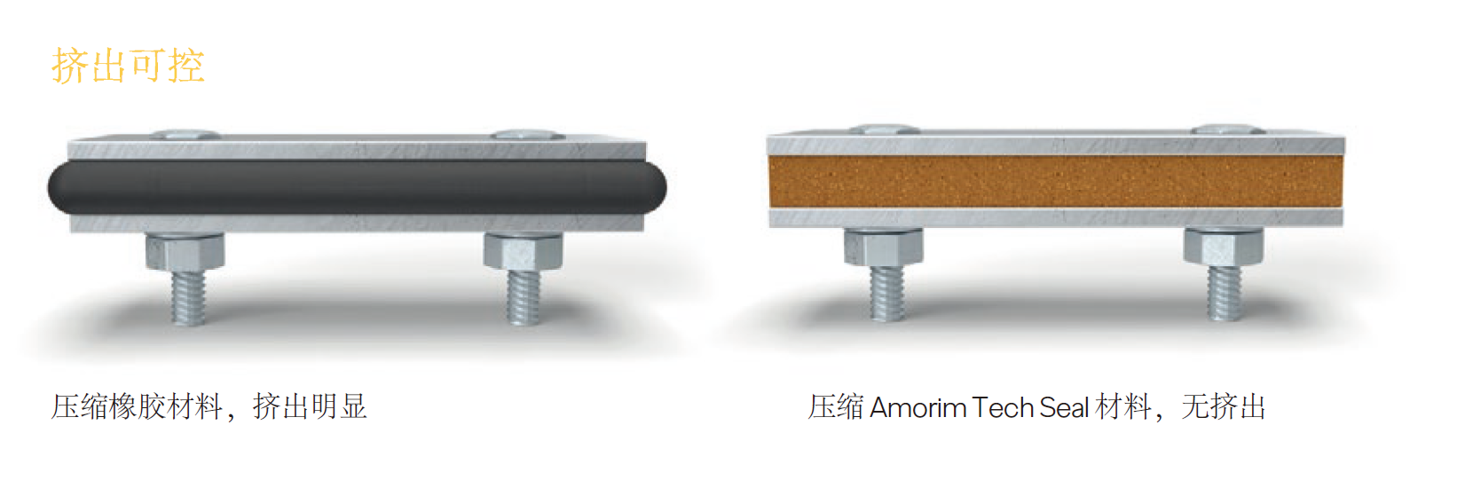 如果選擇硬度合適的軟木橡膠材料,則無(wú)需考慮擠出問(wèn)題。軟木橡膠的可壓縮性可代替不可壓縮的模制橡膠、O形圈等。