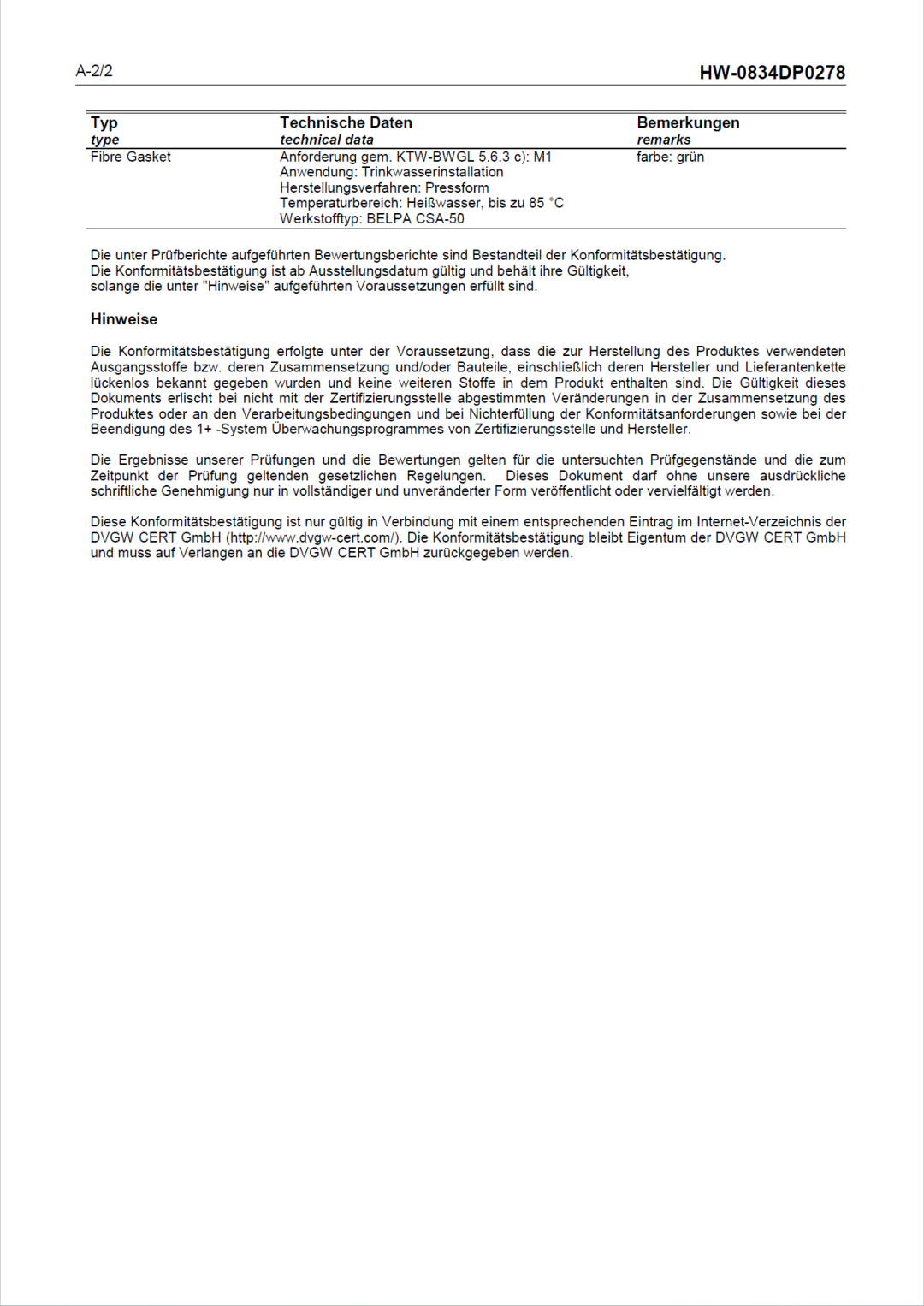 目前,我司合作伙伴西班牙標牌BELPA CSA-50無(wú)石棉板已獲得KTW-BWGL認證。