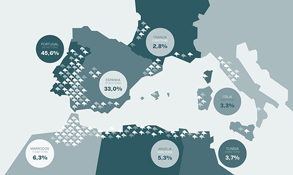 軟木橡樹(shù)主要集中分布在地中海沿岸地區,特別是伊比利亞半島。其中: