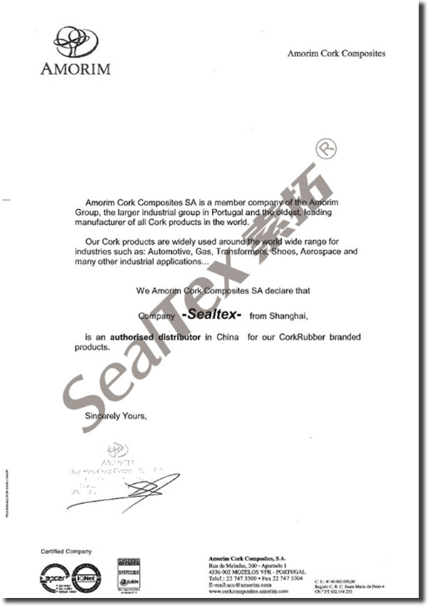 上海一柯索拓密封材料有限公司為AMORIM阿莫林在中國的總代理